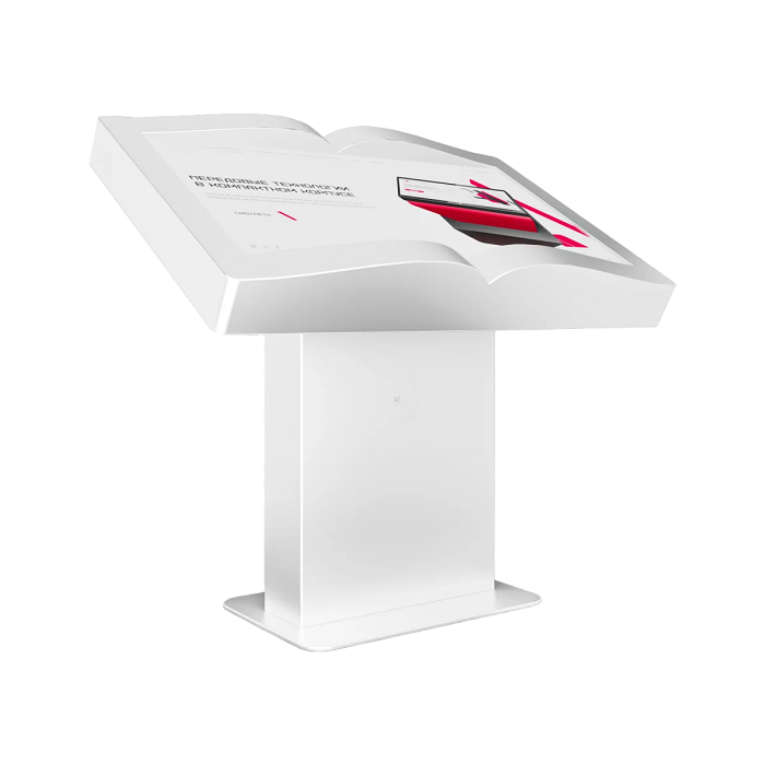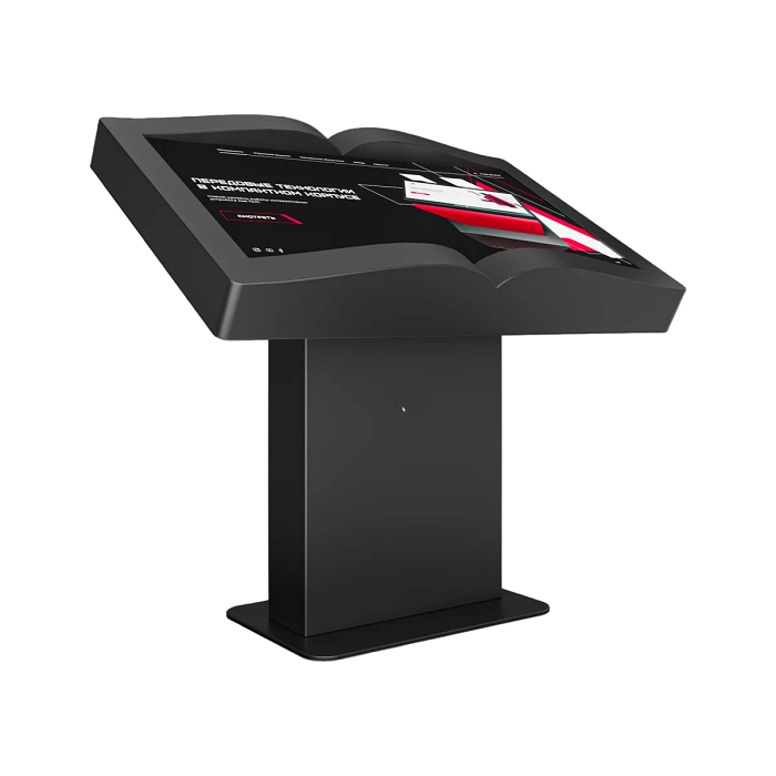 Интерактивный стол Book 55" – устройство, форм-фактор которого реализован в форме раскрытой книги. Механическая регулировка дисплея позволит настроить пользователям оптимальный угол для взаимодействия с программным обеспечением. Оборудование может быть дополнено информационным приложением или интерактивной книгой с эффектом пролистывания страниц.