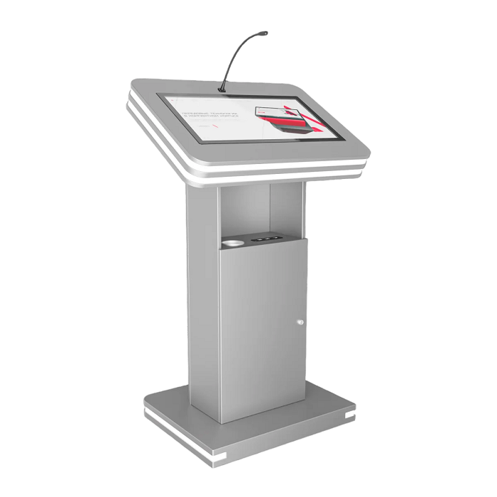 Интерактивная трибуна Light 23,8" — стильная модель, которая украсит любой бизнес-форум и конференцию. Встроенные микрофоны передают звук на большую аудиторию, удобный интерактивный дисплей с мультитач-системой позволяет отображать необходимую информацию не только для спикера, но и для зрителей, передавая ее на большой экран. Помимо этого, в трибуне есть полочка для воды, а также внешние разъемы. Яркий дизайн корпуса со светодиодным узором не сможет оставить никого равнодушным.