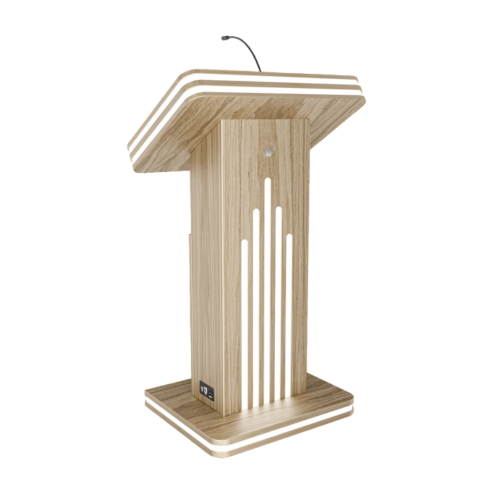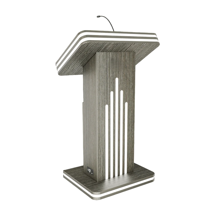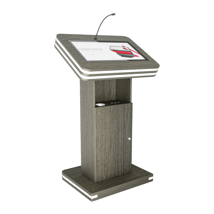 Интерактивная трибуна Light 27" — стильная модель, которая украсит любой бизнес-форум и конференцию. Встроенные микрофоны передают звук на большую аудиторию, удобный интерактивный дисплей с мультитач-системой позволяет отображать необходимую информацию не только для спикера, но и для зрителей, передавая ее на большой экран. Помимо этого, в трибуне есть полочка для воды, а также внешние разъемы. Яркий дизайн корпуса со светодиодным узором не сможет оставить никого равнодушным.